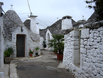 Alberobello ir tulli galvaspilsēta. Tie šeit ir nosēti no vienas vietas. Kāpjot mazo namiņu pārpilnajā kalnā liekas, ka pasaka atdzīvojusies. Šķiet tūdaļkāds mazs cilvēciņš ar garu bārdu pavērs durvis un aicinās ienākt. Varbūt aiz nākamā stūra tas parādīsies un nāks pretī? Nē, diemžēl, tas tikai kārtējais vācu tūrists! Kalna galā, daudz brangāka apmēros, stāv trulli baznīca. Lai man piedod tās radītāji, bet šie apaļie, pelēkbaltie jumtiņi daudz labāk piedien mazajiem pasaku namiņiem. Pilsētas otrā pusē uzeju pavisam mazu kapelliņu, pāris logi, pusducis jumtiņu un pusapaļas durvis. Tā, šķiet, turpina stāstīt aizsākto pasaku...