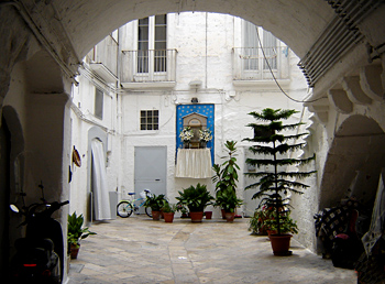 Sabiedēta ar paredzamā gala dinnera oficiālo gaisotni, mani todien vajāja patīkamais, bet bezgala kaitinošais zvērs– „šoppings”. Tam diezgan piemērota likās Apūlijas centrālā pilsēta Bari. Sākumā, kā vienkārša romiešu tirdzniecības pilsēta (Barium), vēlāk normaņu virsvadībā tā kļuva par nozīmīgu jūras ostu, radot nopietnu konkurenci Venēcijai. Pilsēta lepojas ar 11.gs. celtu normaņu baznīcu, Rožera II laikā uzslietu un 13.gs. pārbūvētu pili un 12.gs. romānikas stila katedrāli.