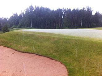 Capitals laukums latviešiem nav jaunums – savulaik, pirms 5-6 gadiem, šeit jau spēlēts, tostarp arī līgas ietvaros. Vislabākās atmiņas par tiešām aizraujoši spēlējamo laukumu gadu no gada motivēja iekļaut turnīra kalendārā plānus tur atgriezties, taču allaž ceļam pamanījās pārskriet kāds melns kaķis, jūrascūciņa vai kāda cita neizdošanos rosinoša radība. Lai vai kā, šopavasar Capitals atkal tika iebalsots sezonas plānos, un augusta otrajā otrdienā viss notika – ap pusdienlaiku no Rīgas atbraukušais sešnieks stājās uz pirmās izsitiena vietas. Nākamais MGL posms 9. septembrī Viesturos, un te daudz kas var izšķirties – labu rezultātu vajadzēs Janševicam, kam tukša sanāk 8. posma jeb Match Play godalgu dalīšana. Kopvērtējumā pirmais tagad Armands, taču Jānis atpaliek nepilnus simts punktus, bet turpat 136 punktu attālumā aiz viņa pēc iegūtās otrās vietas Lietuvā – arī Ingmārs. Tiesa, jāatceras, ka finišā divus punktu skaita ziņā vājākos posmus skaitām mīnusā, kas nozīmē – visa lielākā rēķināšana vēl tikai priekšā. Šobrīd – jāspēlē! Tiekamies Viesturos. 25/07/2014 Pa priekšu visiem jau 8:30 laukumā aizskrēja ar pirmo numuru izliktais Ingmārs Jurisons un Kristaps Baņķis, kurš, atcerēsimies, astotdaļfinālā sadeva pa muguru par favorītu uzskatītajam Artūram Šenhofam. Šoreiz gan zvaigznes neko labo nesolīja – galīgi nav sporta diena, vieni septītnieki zīmējas, atsrologa sirdī optimisms nedzirkstīja. “Ja spēlētu pēc 12:00, tad vēl pacīnītos...” Zvaigznēm šoreiz izrādījās taisnība – Ingmārs ar bugijiem uzvarēja pirmās trīs bedrītes, tad Kristapam izdevās pāris neizšķirti uz 4. (double) un 6. (par), bet nākamās trīs – atkal zaudētas. 7 down pēc pirmā devītnieka nesolīja intrigu un tāda patiešām neatnāca – vēl divi neizšķirti uz 10. un 11. (te Ingmārs sāka stabili ripināt pa trim reizēm), bet 12. atrastais ūdens pielika punktu – 8&6. Lai varētu skatīties acīs Šenhofam, Kristaps bija nolicis sev par mērķi uzvarēt kaut vienā bedrītē, tomēr iznākums tāds, ka šie kungi viens otram acīs tagad neskatīsies... Kā nākamie aiz muguras draiverus no somām laukā vilka Jānis Janševics un Gundars Galkins. Pirmajā devītniekā abi spēlēja līdzīgi, pa reizei dāvājot pretiniekam neizšķirtu vai pat uzvaru – parasti ar “izcilu” ripināšanu. 8.bedrītē Janševics aizsāka jauku tradīciju divas reizes pēc kārtas sist ūdenī, ko atkārtoja arī 13.bedrītē. Rezultātā Gundars izvirzījās vadībā ar 3 UP. Nākamās divas bedrītes uzvarēja Janševics (15. atkal pateicoties Gundara “laipnai” ripināšanai). 16. abiem PAR, bet punktu mačam Gundars pielika nākamajā bedrītē ar otro birdie šajā dienā – 2&1. Savam pretiniekam piekāpās arī otrs JJ – Jarāns. Visu maču Misters Miedziņš līdzīgi spēkojās ar Armandu Tripānu, tomēr pēdējā bedrītē Jāni pazudināja krūmi pie grīna un Armands uzvarēja ar 2&0. Mazliet vēlāk laukumā devās arī Ēriks Kundziņš un Iveta Kaminska. Pateicoties pēkšņam ārzemju klientu apciemojumam, Ēriks nokavēja startu par pusstundu. Līdz ar to stresains sākums un pēc 4 bedrēm Ivetai 3 up. Vienu bedri izdevās atspēlēt, bet tad, uz sestās, nācās cīnīties ne tikai ar Ivetas stabilo spēli, bet arī ar sieviešu intuīciju, kas pateica priekšā Ivetai kādu nūju ņemt, un 6. bedrītē viņa ieripināja PAR no forgrīna. 8. bedrīti Iveta uzvarēja ar fantastisku sitienu no apmēram 50 metriem piesitot 2 cm no karoga. Pilnīgi noteikti tā bija Ivetas diena. Ērikam vēl dažas bedrītes izdevās nospēlēt neizšķirti un vienu uzvarēt, tomēr tas neglāba viņu no kapitulācijas ar 6&4.