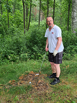 Pēc otrā apļa pirmā sitiena Hoļca bumbiņa piezemējās priedītēs jau tuvāk devītajam fērvejam un tik viegli rokās nedevās. Gundara ērgļa skats tomēr beigās ieraudzīja noslēpumaino sriksonu, un Ivo no sarežģītās pozīcijas tika atpakaļ uz vajadzīgā fērveja. JJ un GG, savukārt, tika galā ar milzīgo traucēkli fērveja vidū - kurš apliecot bumbiņu ap stumbru, kurš to izsitot cauri kuplajam lapu vaiņagam. Beigās dienas otrā brālīgā bedrīte - visiem pa 5. 11ajā brālīgs piecinieks sanāca tikai Jānim un Ivo. Pirmajam pēc veiksmīga megadraiva un ne tik veiksmīgas tuvās spēles, otrajam pēc pirmā sitiena uz paugura smiltīm un veiksmāgiem turpmākajiem sitieniem un ripinājumiem. GG paviesojās dīķī pa labi no fērveja un tika pie 7. 12ajā JJ 5, GG 6 un IK 8. Arī 13ā Hoļcu nelutināja, ievilkdama dīķī bumbiņu pēc Erudīcijas Guru pirmā sitiena. GG meistarīgi tika pāri dīķim, vēl meistarīgāk piesita bumbiņu pie karodziņa un tad jau PAR bija tehnikas jautājums! JJ bugijs un IK - 6. Suņa kājas 14ajā JJ sita taisni un tālu, Gundars un Hoļcs izvēlējās soļot cauri pauguram un GG turklāt klāt pieķēra arī bunkuru. Ar šiem pārbaudījumiem Latvijas Golfa Stāstnieks tika galā teicami - kārtājais lieliskais ripinājums ļāva kartītē ierakstīt 7. Tāds pats cipars arī JJ, IK par vienu vairāk. Šajā brīdī JJ pārsvars pār Gundaru bija tikai divi sitieni, taču dienas izšķirošie notikumi bija jau pavisam tuvu... Kaut arī no 15ā tee Gundars aizsita stipri pa kreisi, no izsitiena vietas vēl nekas par tumšajiem un drūmajiem padebešiem, kas lēnām vilkās virs GG galvas nevēstīja... Gundars salīdzinoši raiti atrada savu bumbiņu, kas laiski gulēja zem egles un bija tikai ļoti daļēji sitama. Pēc otrā sitiena, GG nācās doties uz pretējo bunkuru, no kura ar pirmo mēģinājumu ārā tikt neizdevās. Tad kalniņš, uz priekšu, tad tuvāk karogam, tad vēl drusku tuvāk un tad pēc astotā sitiena nepaklausīgā nervu bojātāja beidzot ievēlās bedrītē. Un kā par spīti JJ pēc stipri viduvēja pirmā sitiena, ar otro salīdzinoši veiksmīgi uzčipoja uz grīna un tad ar savu dienas veiksmīgāko ripinājumu noformēja pāru un 7 sitienu pārsvaru pirms pēdējām divām bedrītēm. Hoļcs pēc krietni mazāk pazaudētiem nerviem dabūja 5.16ajā JJ laikam pārāk atslābinājās - pēc kārtīgas slaisa un pailgas meklēšanas, bumbiņa bērzos tika atrasta, taču līderim nācās dropēt, ar nākamo sitienu arī vēl neizdevās tikt uz fērveja un beigās 9. Neskatoties uz to, ka kādu brīdi starp fērveju un bērziem nācās meklēt arī Hoļca bumbiņu, IK un GG tika pie relatīvi apmierinošiem dubultbugijiem. Jānis priekšpēdējā bedrītē atguvās ar vēl vienu tālu draivu un pāru. IK cauri dropzonas laukumiņam un GG krietni taisnākā maršrutā dabūja pa bugijam. JJ arī pēdējā bedrītē izdevās teicams pirmais sitiens. Pāri bunkuram tika arī Hoļcs un Gundars turpat vien kalna galā arī bija. Abi draugi pēc īsas ekskursijas pa labi no fērveja tika pie bugijiem, bet JJ, no 110 metriem ar otro sitienu paviesojās bunkurā un dienu noslēdza ar 7. JJ kopā 99, GG 103 un IK 115.