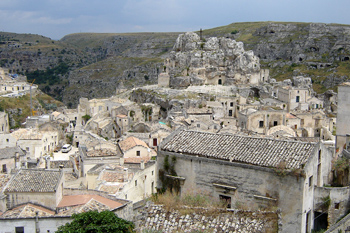 Mans mērķis bija viena no interesantākajām šī reģiona pilsētām – Matera. Tūrisma ceļvedi pāršķirstot vilinoša likās drupu ieleja Sasi, kur klintīs izcirstajās alās jau no 8 gadsimta patvērās mūki. Klintīs tika izcirstas daudzas kapelas un baznīcas, neskaitīju, bet esot ap 120. Vēlāk tās sāka apdzīvot zemnieki, sak, neies jau mantu laist zudumā! Turīgākie iedzīvotāji pamanījās starp šaurajām un klinšainajām ejām izbūvēt diezgan lielas savrupmājas un klosterus. 20. gadsimta 50. gados ieleja piedzīvo pagrimumu, tajā valda netīrība un nabadzība. Ja kāds, gadījumā ir lasījis Dantes „Elli”, tad tur esot bijis kaut kas stipri līdzīgs.
