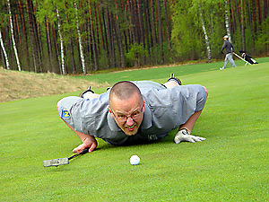 P.S. Sausas statistikas cienītājiem: Hoļcs laukumu veica ar 111 sitieniem. Pēc paša golfera domām izcila spēle īsajās bedrītēs – divi pāri un divi bugiji, un katastrofāla spēle pirmajā bedrītē un PAR 5 bedrītēs – divi astotnieki, desmitnieks un vienpasmitnieks. Gundaram veicās nedaudz sliktāk – 127. Ļoti slikts pirmais aplis – 66 sitieni un katastrofa ar trim dīķī pazaudētām bumbām 17.tajā bedrītē.