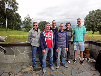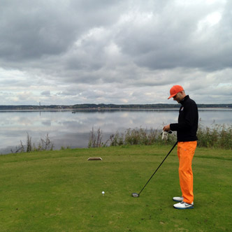 Capitals laukums latviešiem nav jaunums – savulaik, pirms 5-6 gadiem, šeit jau spēlēts, tostarp arī līgas ietvaros. Vislabākās atmiņas par tiešām aizraujoši spēlējamo laukumu gadu no gada motivēja iekļaut turnīra kalendārā plānus tur atgriezties, taču allaž ceļam pamanījās pārskriet kāds melns kaķis, jūrascūciņa vai kāda cita neizdošanos rosinoša radība. Lai vai kā, šopavasar Capitals atkal tika iebalsots sezonas plānos, un augusta otrajā otrdienā viss notika – ap pusdienlaiku no Rīgas atbraukušais sešnieks stājās uz pirmās izsitiena vietas. Nākamais MGL posms 9. septembrī Viesturos, un te daudz kas var izšķirties – labu rezultātu vajadzēs Janševicam, kam tukša sanāk 8. posma jeb Match Play godalgu dalīšana. Kopvērtējumā pirmais tagad Armands, taču Jānis atpaliek nepilnus simts punktus, bet turpat 136 punktu attālumā aiz viņa pēc iegūtās otrās vietas Lietuvā – arī Ingmārs. Tiesa, jāatceras, ka finišā divus punktu skaita ziņā vājākos posmus skaitām mīnusā, kas nozīmē – visa lielākā rēķināšana vēl tikai priekšā. Šobrīd – jāspēlē! Tiekamies Viesturos. 25/07/2014 Pa priekšu visiem jau 8:30 laukumā aizskrēja ar pirmo numuru izliktais Ingmārs Jurisons un Kristaps Baņķis, kurš, atcerēsimies, astotdaļfinālā sadeva pa muguru par favorītu uzskatītajam Artūram Šenhofam. Šoreiz gan zvaigznes neko labo nesolīja – galīgi nav sporta diena, vieni septītnieki zīmējas, atsrologa sirdī optimisms nedzirkstīja. “Ja spēlētu pēc 12:00, tad vēl pacīnītos...” Zvaigznēm šoreiz izrādījās taisnība – Ingmārs ar bugijiem uzvarēja pirmās trīs bedrītes, tad Kristapam izdevās pāris neizšķirti uz 4. (double) un 6. (par), bet nākamās trīs – atkal zaudētas. 7 down pēc pirmā devītnieka nesolīja intrigu un tāda patiešām neatnāca – vēl divi neizšķirti uz 10. un 11. (te Ingmārs sāka stabili ripināt pa trim reizēm), bet 12. atrastais ūdens pielika punktu – 8&6. Lai varētu skatīties acīs Šenhofam, Kristaps bija nolicis sev par mērķi uzvarēt kaut vienā bedrītē, tomēr iznākums tāds, ka šie kungi viens otram acīs tagad neskatīsies... Kā nākamie aiz muguras draiverus no somām laukā vilka Jānis Janševics un Gundars Galkins. Pirmajā devītniekā abi spēlēja līdzīgi, pa reizei dāvājot pretiniekam neizšķirtu vai pat uzvaru – parasti ar “izcilu” ripināšanu. 8.bedrītē Janševics aizsāka jauku tradīciju divas reizes pēc kārtas sist ūdenī, ko atkārtoja arī 13.bedrītē. Rezultātā Gundars izvirzījās vadībā ar 3 UP. Nākamās divas bedrītes uzvarēja Janševics (15. atkal pateicoties Gundara “laipnai” ripināšanai). 16. abiem PAR, bet punktu mačam Gundars pielika nākamajā bedrītē ar otro birdie šajā dienā – 2&1. Savam pretiniekam piekāpās arī otrs JJ – Jarāns. Visu maču Misters Miedziņš līdzīgi spēkojās ar Armandu Tripānu, tomēr pēdējā bedrītē Jāni pazudināja krūmi pie grīna un Armands uzvarēja ar 2&0. Mazliet vēlāk laukumā devās arī Ēriks Kundziņš un Iveta Kaminska. Pateicoties pēkšņam ārzemju klientu apciemojumam, Ēriks nokavēja startu par pusstundu. Līdz ar to stresains sākums un pēc 4 bedrēm Ivetai 3 up. Vienu bedri izdevās atspēlēt, bet tad, uz sestās, nācās cīnīties ne tikai ar Ivetas stabilo spēli, bet arī ar sieviešu intuīciju, kas pateica priekšā Ivetai kādu nūju ņemt, un 6. bedrītē viņa ieripināja PAR no forgrīna. 8. bedrīti Iveta uzvarēja ar fantastisku sitienu no apmēram 50 metriem piesitot 2 cm no karoga. Pilnīgi noteikti tā bija Ivetas diena. Ērikam vēl dažas bedrītes izdevās nospēlēt neizšķirti un vienu uzvarēt, tomēr tas neglāba viņu no kapitulācijas ar 6&4.